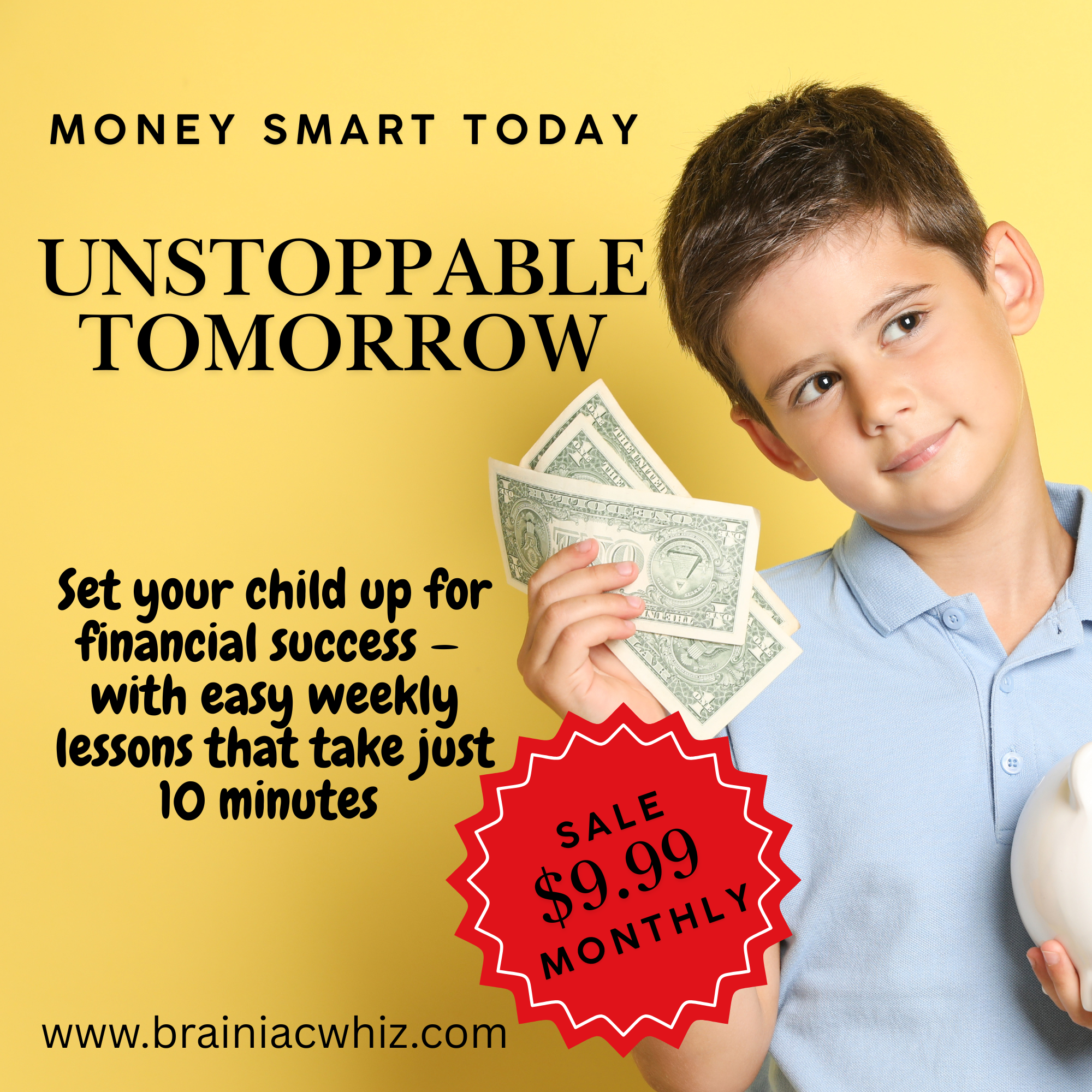 We teach kids (ages 8–14) real financial skills in a fun and simple way — in just 10 minutes a week. Our weekly Printable Brainiacwhiz Newsletters delivered directly to your inbox, builds money confidence, smart spending habits, saving skills, and early business thinking your child will use for life. Give them the financial advantage most adults never got. Cancel anytime (no strings attached).
